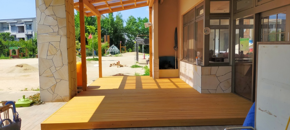 しおあなの森保育園様の玄関横ウッドデッキを制作しました。