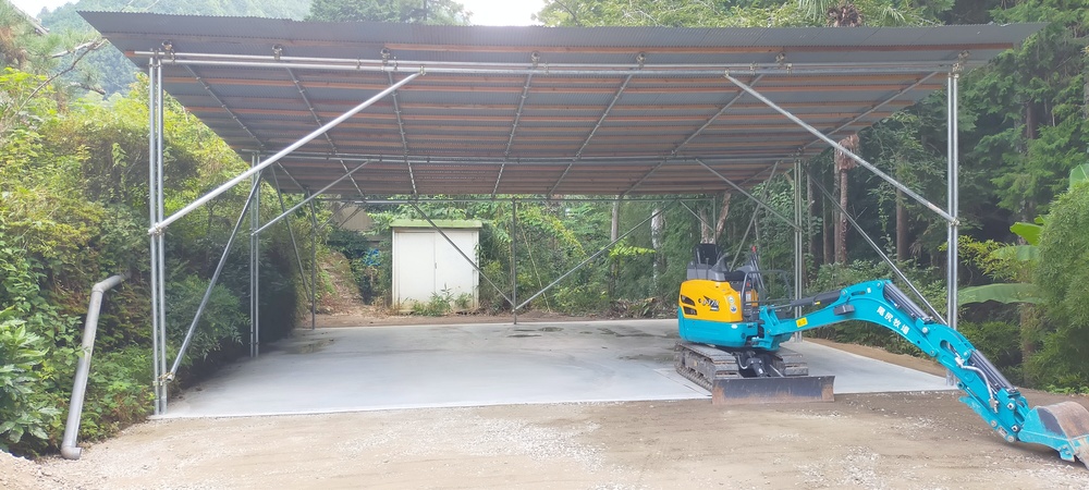 農機具置き場の土間コンクリート打設から屋根まで制作しました。